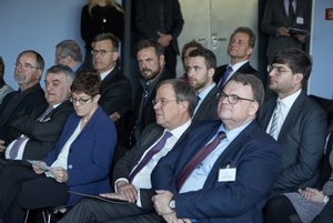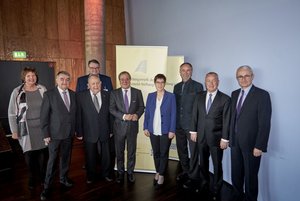 - Die Ehrengäste, der Leiter der Karl-Arnold-Stiftung sowie ein Teil des Vorstands des Vereins Karl-Arnold-Stiftung e.V. und Herr Thielen von der Konrad-Adenauer-Stiftung (v.l.n.r. Regina van Dinther, Herbert Reul, Jürgen Clausius, Dr. Bernhard Worms, Ministerpräsident Armin Laschet, CDU-Vorsitzende Annegret Kramp-Karrenbauer, Helmut Stahl, Wilhelm Hecker, Michael Thielen)