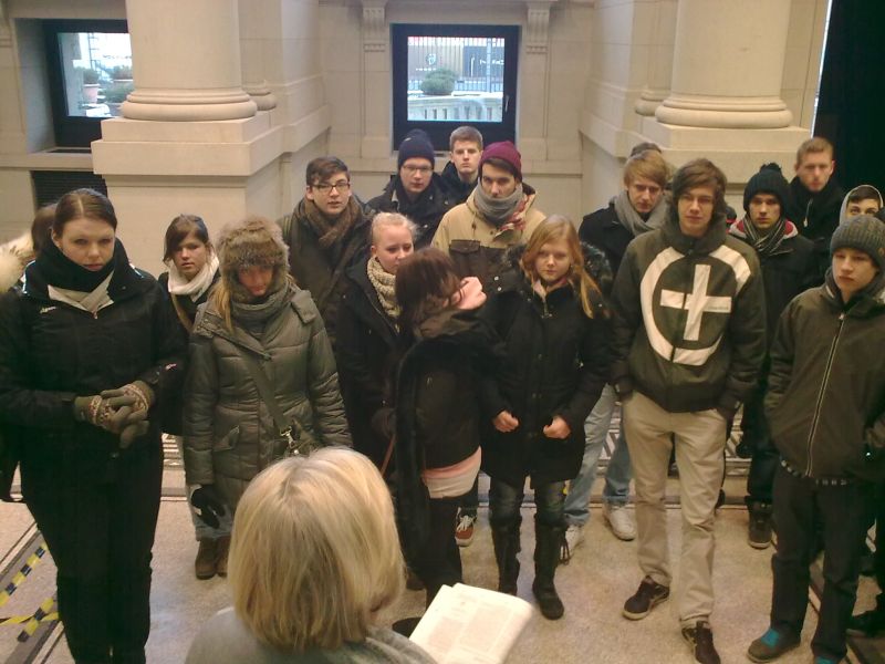 Als einen „Brennpunkt deutscher Geschichte und Politik“ erlebten etwa 30 Schülerinnen und Schüler aus Hilden und Haan unsere Bundeshauptstadt Berlin. In zwei parallel verlaufenden Seminaren nahmen an einem ambitionierten Programm der Karl-Arnold-Stiftung e.V. teil, das sie u.a. in das Bundeskanzleramt, den Bundesrat und den Bundestag führte. Eine Seminargruppe konnte zudem in einer Niederlassung der Bundesbank Fragen zu den aktuellen politischen Entwicklungen ("Schuldenkrise...") diskutieren.