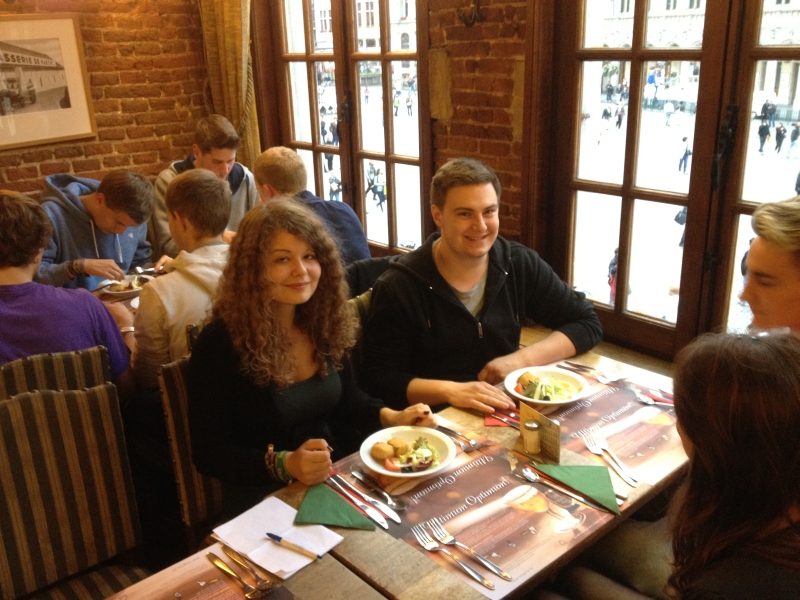Nach Brüssel ging es zunächst weiter nach Waterloo. Die Schlacht bei Waterloo vom 18. Juni 1815 war die letzte Schlacht Napoleon Bonapartes. Die Niederlage der von Napoleon geführten Franzosen beendete dessen "Herrschaft der Hundert Tage". In einem beeindruckenden, szenisch nachgestalteten Schlachtfresko, wird die Schlacht anschaulich dargestellt. Die Schülergruppe lauschte gespannt den Ausführungen der Führerin vor Ort und durch die über Lautsprecher verbreiteten Kampfgeräusche fühlte man sich direkt in die Schlacht versetzt. Anschließend ging es über 226 Stufen hinauf auf den Löwenhügel. Von hier aus hatte man einen herrlichen Rundumblick über das damalige Schlachtfeld.