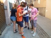 Nach einer stressfreien Fahrt und Zimmerbelegung im Hotel begaben wir uns auf den Place de la cathedrale zu einer Stadtrallye. In 7er- bzw. 8er-Gruppen erkundeten wir über 2 Stunden lang die Stadt zwischen Münster und St. Thomas, dabei mussten wir 14 Stationen anlaufen und 22 Aufgaben bearbeiten. Der Einsatz, die einzelnen Teams erzielten von 22 möglichen Punkten 18 bis 20, wurde abschließend mit süßem Gebäck belohnt. Diese Rallye war ein gelungener Einstieg in unseren Straßburg-Besuch, obwohl es ganz schön warm an diesem Nachmittag und dementsprechend anstrengend war.